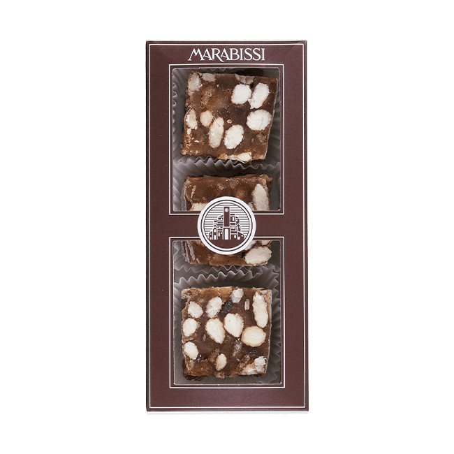 Ingredienti: Frutta candita 32% (scorza arancia, scorza cedro, sciroppo di glucosio-fruttosio, zucchero, succo di limone concentrato), mandorle 31%, zucchero, farina di frumento, miele, sciroppo di zucchero invertito, spezie, ostia (fecola di patate, acqua, olio di girasole). Può contenere uova, soia, latte, noci, nocciole, pistacchi e senape.