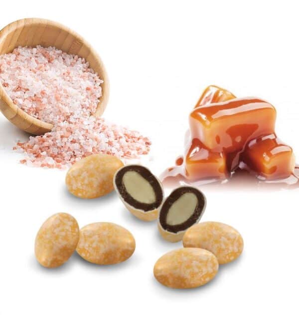 Ingredienti: cioccolato al latte 48% (zucchero, burro di cacao, latte intero in polvere, massa di cacao, emulsionante: lecitina di soia, aroma naturale di vaniglia. Cacao min. 34%), zucchero, mandorla 21%, addensante: maltodestrina, gomma arabica, amido di riso, sale 1,5%, agente di rivestimento: cera carnauba, coloranti: E160a (se arancione), E171 (se bianco). Allergeni: oltre a latte, soia e mandorla, il prodotto può contenere nocciole, noci, noci pecan, pistacchi, anacardi. Senza glutine.