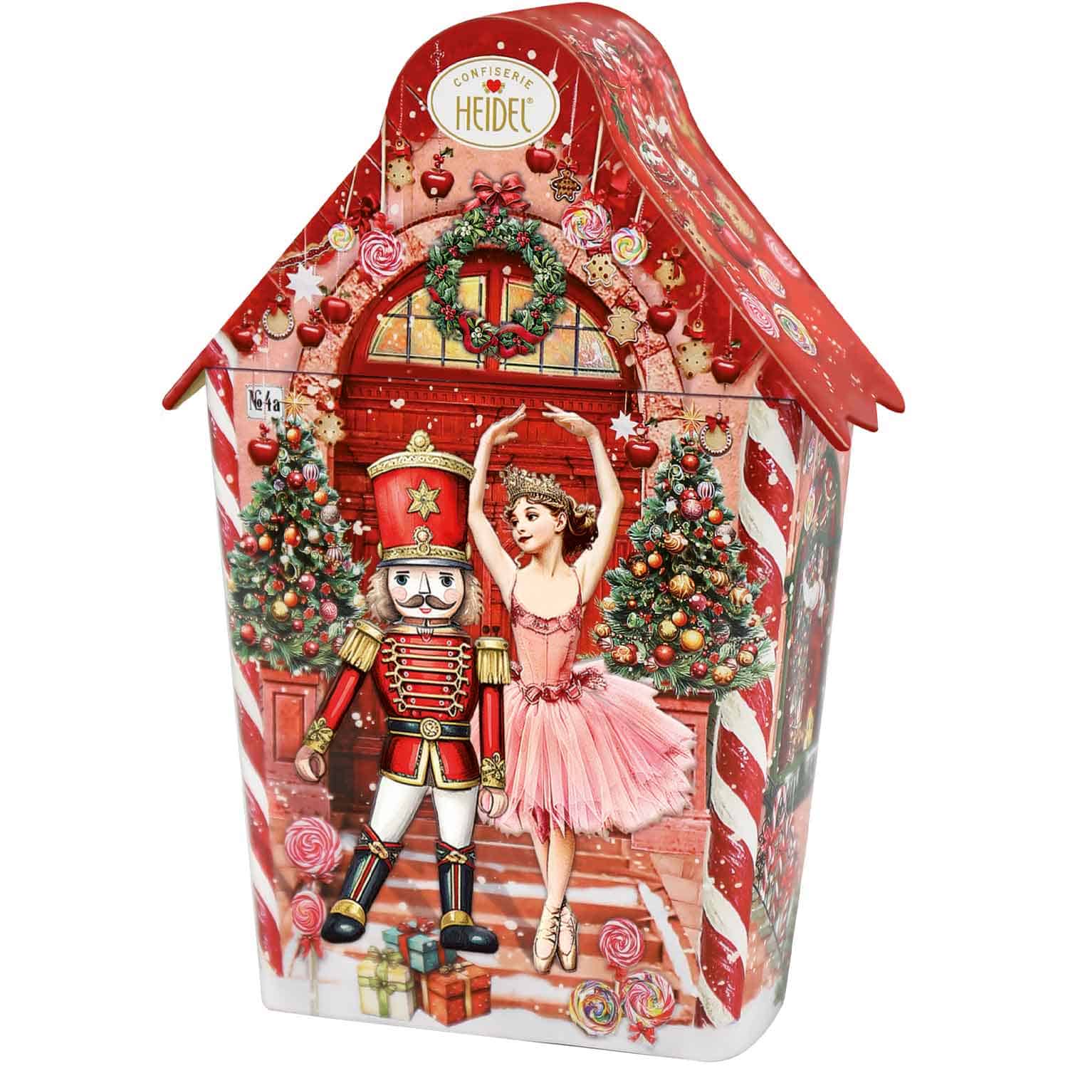 Un tocco magico di romanticismo natalizio: la Casa delle Fiabe di Natale Heidel è una scatola di metallo dal design curato a forma di casetta, decorata con incantevoli illustrazioni del Principe Schiaccianoci e di Clara. Il design nostalgico evoca le classiche storie natalizie e rende la scatola un vero e proprio colpo d’occhio. All’interno, troverete una selezione di specialità al cioccolato al latte che si sciolgono in bocca, perfette per momenti di puro piacere durante l’Avvento. Ideale come regalo, oggetto da collezione o per voi stessi: un regalo da favola con un delizioso ripieno.