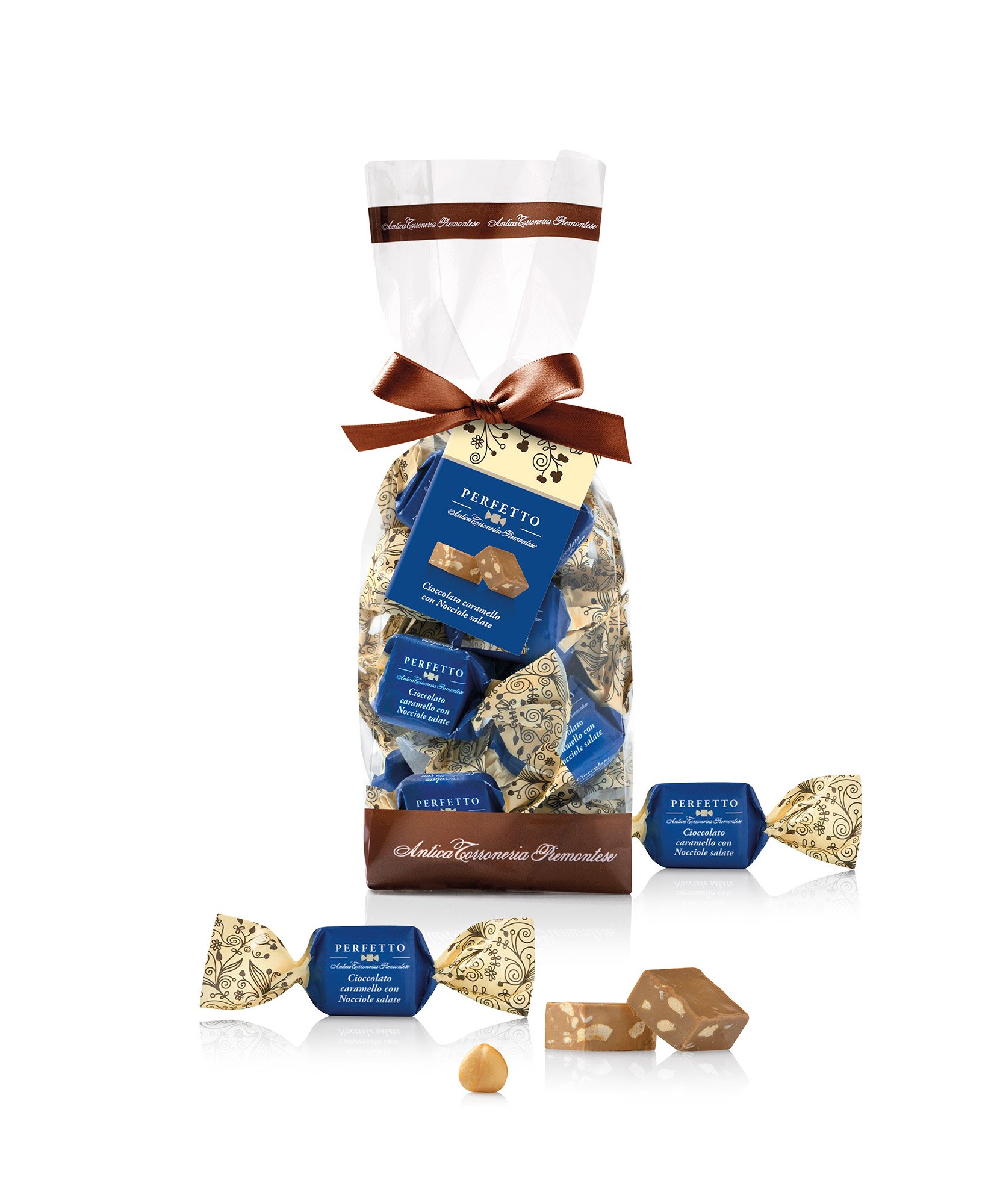 Ingredienti: cioccolato bianco al caramello 66% (zucchero, burro di cacao, latte intero in polvere, caramello in polvere, latte scremato in polvere, zucchero caramellizzato. pasta di cacao, lecitina di girasole), nocciole 33%, aroma naturale e sale.