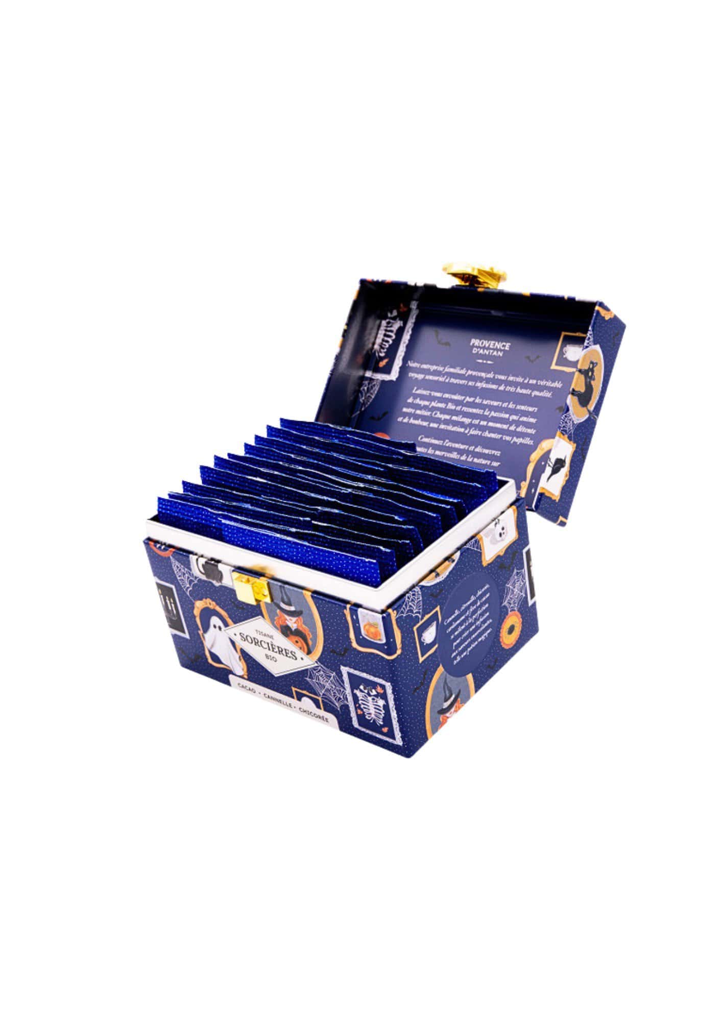 Sotto la luna argentata, si prepara un elisir : cacao avvolgente, cannella ammaliante e cicoria magica si fondono per creare una tisana incantevole dalle note profonde e speziate , che risveglia i sensi con poesia e mistero. Presentata in una raffinata scatola di metallo da collezione.