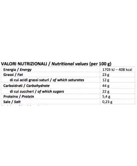 Energia 1703 kJ – 408 kcal / Grassi 23 g di cui acidi grassi saturi 12 g /