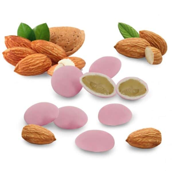Mandorle siciliane tostate, ricoperte da finissimo strato di zucchero rosa