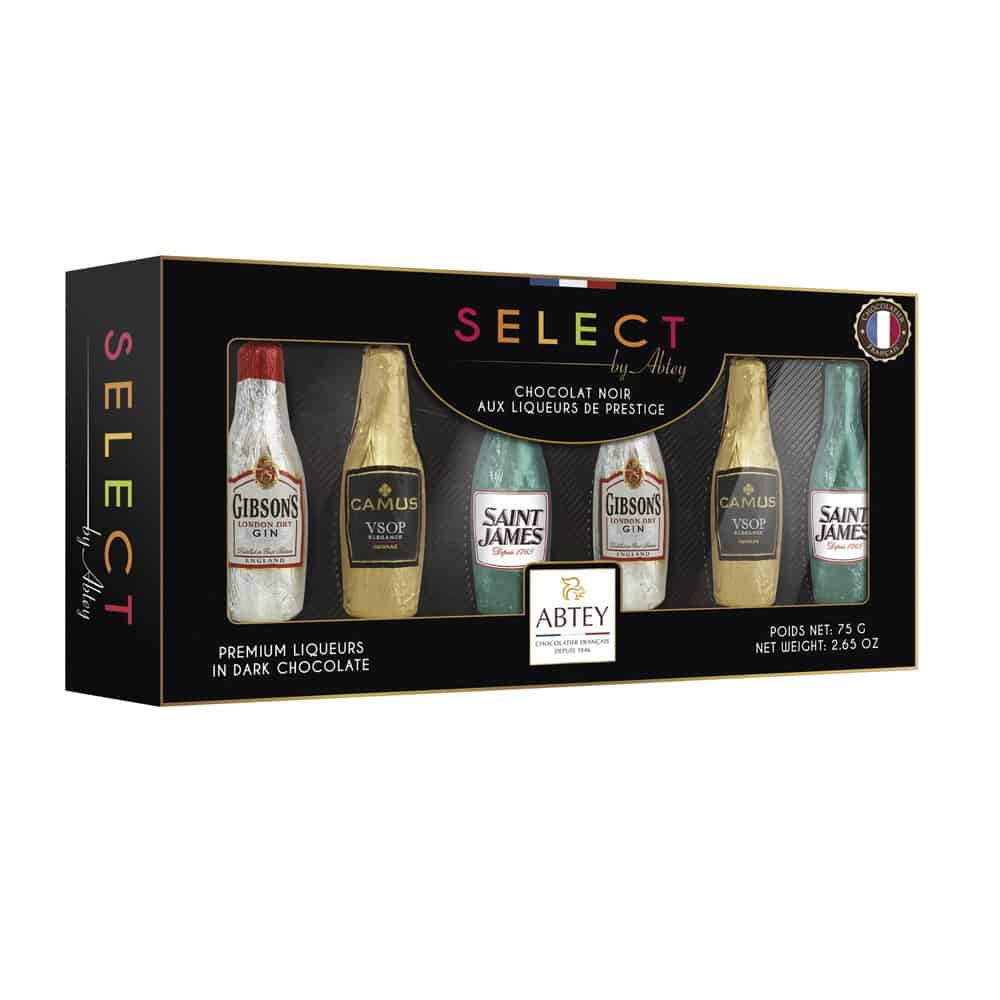 Sciroppo di zucchero invertito, zucchero, massa di cacao, burro di cacao, alcol, Cognac CAMUS® VSOP (2,18%), Gin Gibson’s® (1,92%), Rum St James® (1,79%), emulsionante: lecitina di soia, estratto di vaniglia.