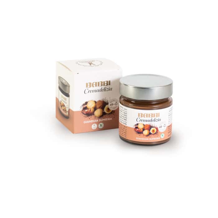 Dal gusto unico e inconfondibile, la Cremadelizia Gianduia Suprema Babbi è un vero capolavoro di bontà, realizzata con il 48% di nocciola Piemonte IGP.