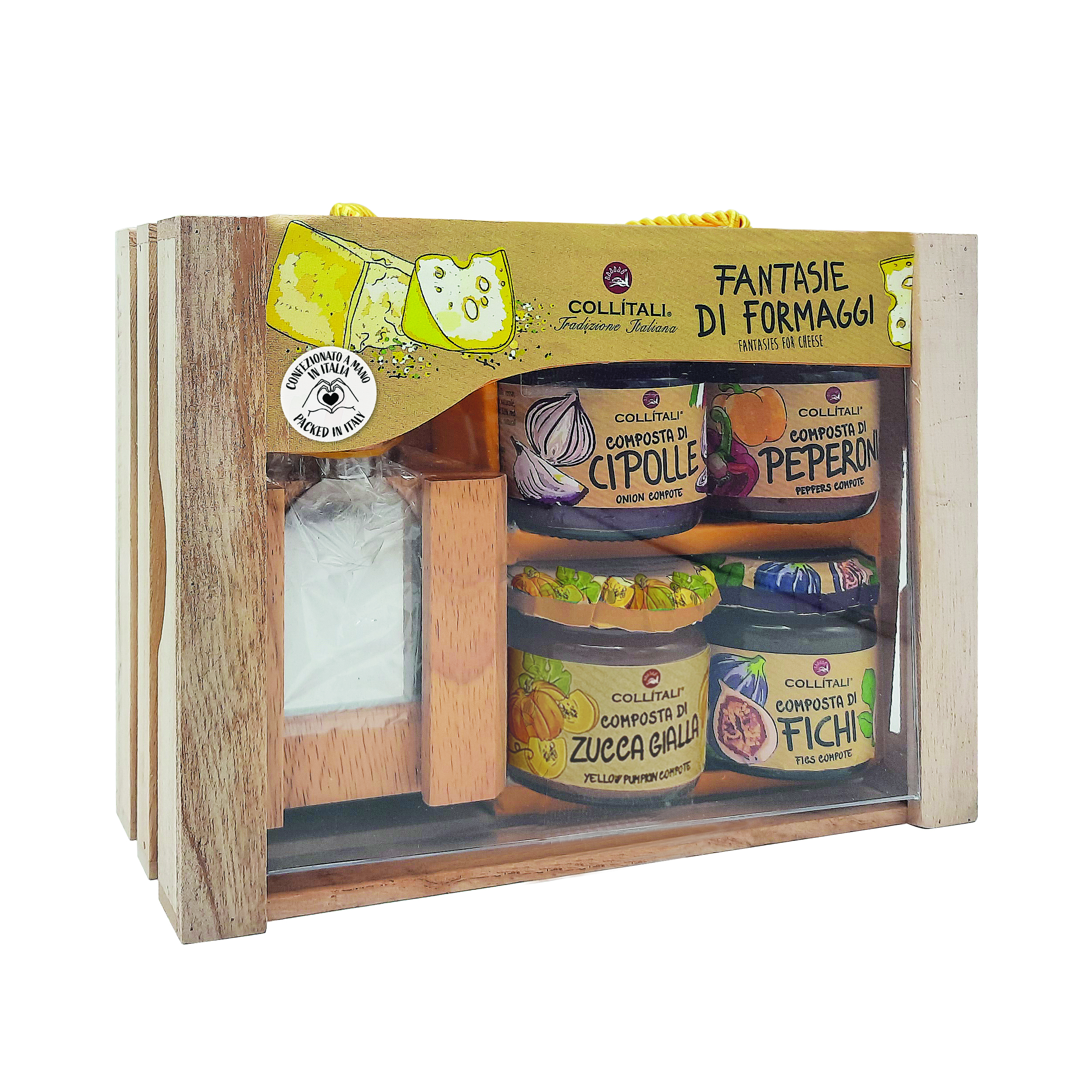 Pratica cassetta in legno,un modo diverso per creare una tavola piena di gusto con condimenti ideale per formaggi