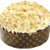 Panettone Fiasconaro con Crema di Mandorle d’Avola da spalmare, ricoperto di glassa bianca e fogliame di Mandorle.