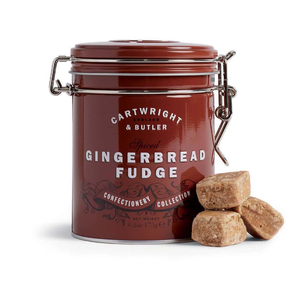 FUDGE, Un classico e molto amata, questa caramella al gusto gingerbread. La scelta perfetta per un regalo premuroso, questo invitante fondente è presentato in una scatola di latta meravigliosamente elegante con coperchio a clip.