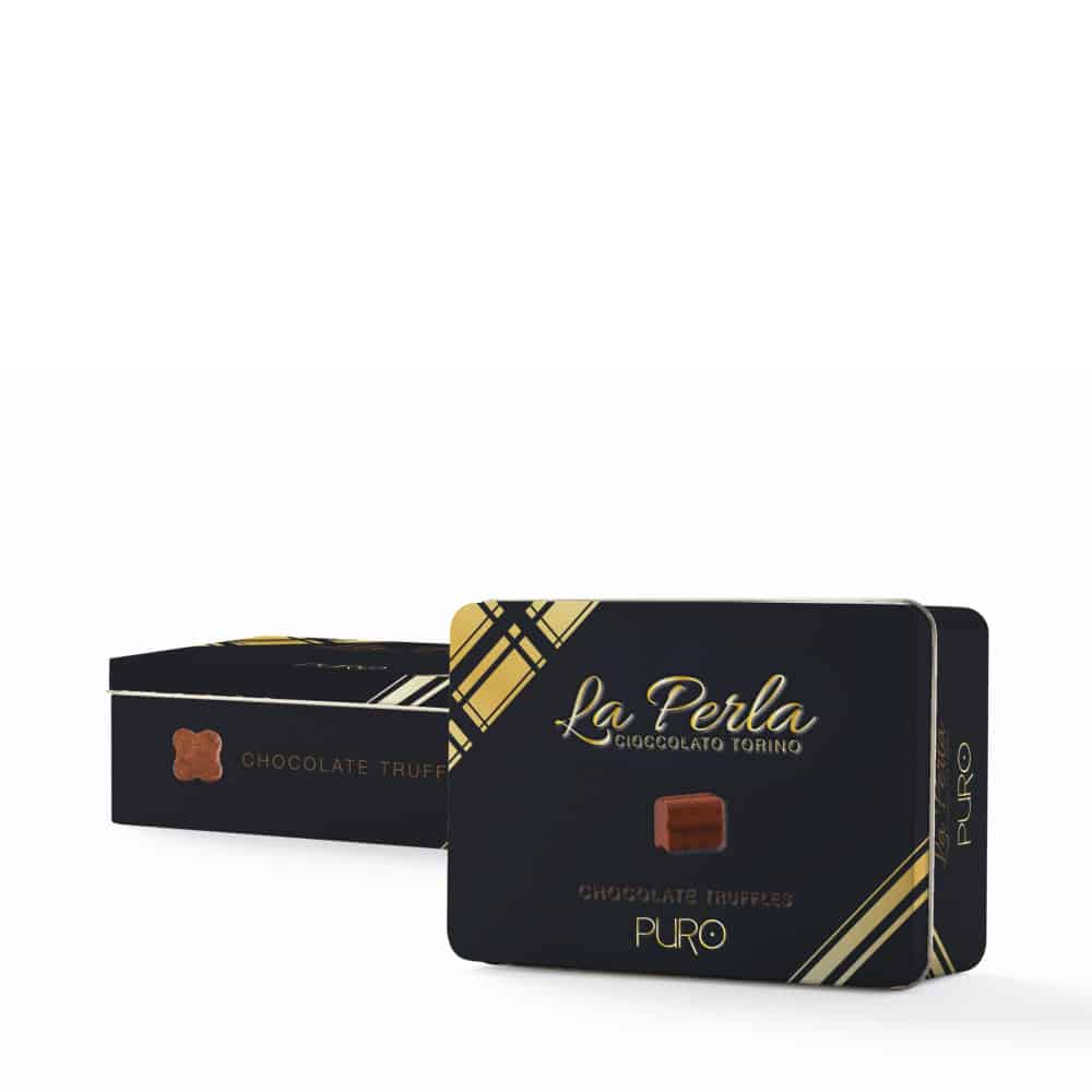 Una confezione in metallo elegante e raffinata per un regalo che sa stupire e farsi ricordare nel tempo. All’interno della latta sono racchiusi i Tartufi di Cioccolato e i Gianduiotti della linea “Puro”, senza zuccheri aggiunti: cioccolato fondente e cioccolato al latte con Nocciola, cioccolato bianco con profumati pistacchi.