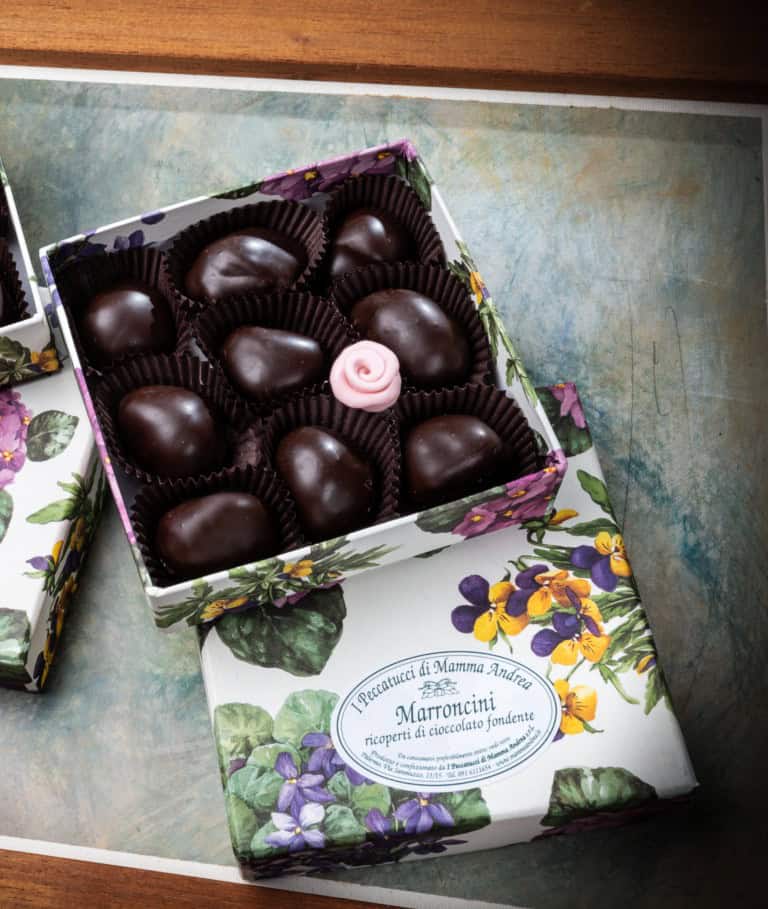 Marron glacè ricoperti da un sottile velo di cioccolato fondente 56%. In un solo boccone una dolce esplosione di bontà.