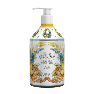 Ingredienti: Olio d’oliva, Olio di cocco, Acqua, Glicerina, Profumo, Barbabietola in polvere, Sale, Scorza d’arancia.