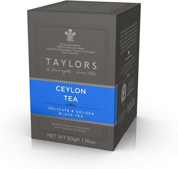 “Ceylon Tea”: questo tè di Ceylon, di alta qualità, proviene dalle Highlands occidentali di Dimbula, Sri Lanka, dove il caldo clima secco nei primi mesi dell’anno aiuta le foglie a sviluppare il loro sapore unico. È leggero e dorato con una freschezza che è quasi agrumata, giustamente acclamato come un classico.