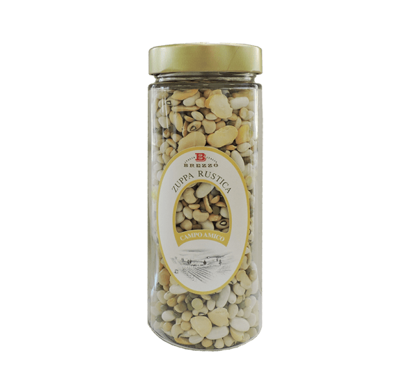 Piselli, Fagioli bombonini, Fave spezzate, Azuki verdi, Fagioli cannellini, Fagioli dall’occhio in proporzione variabile.